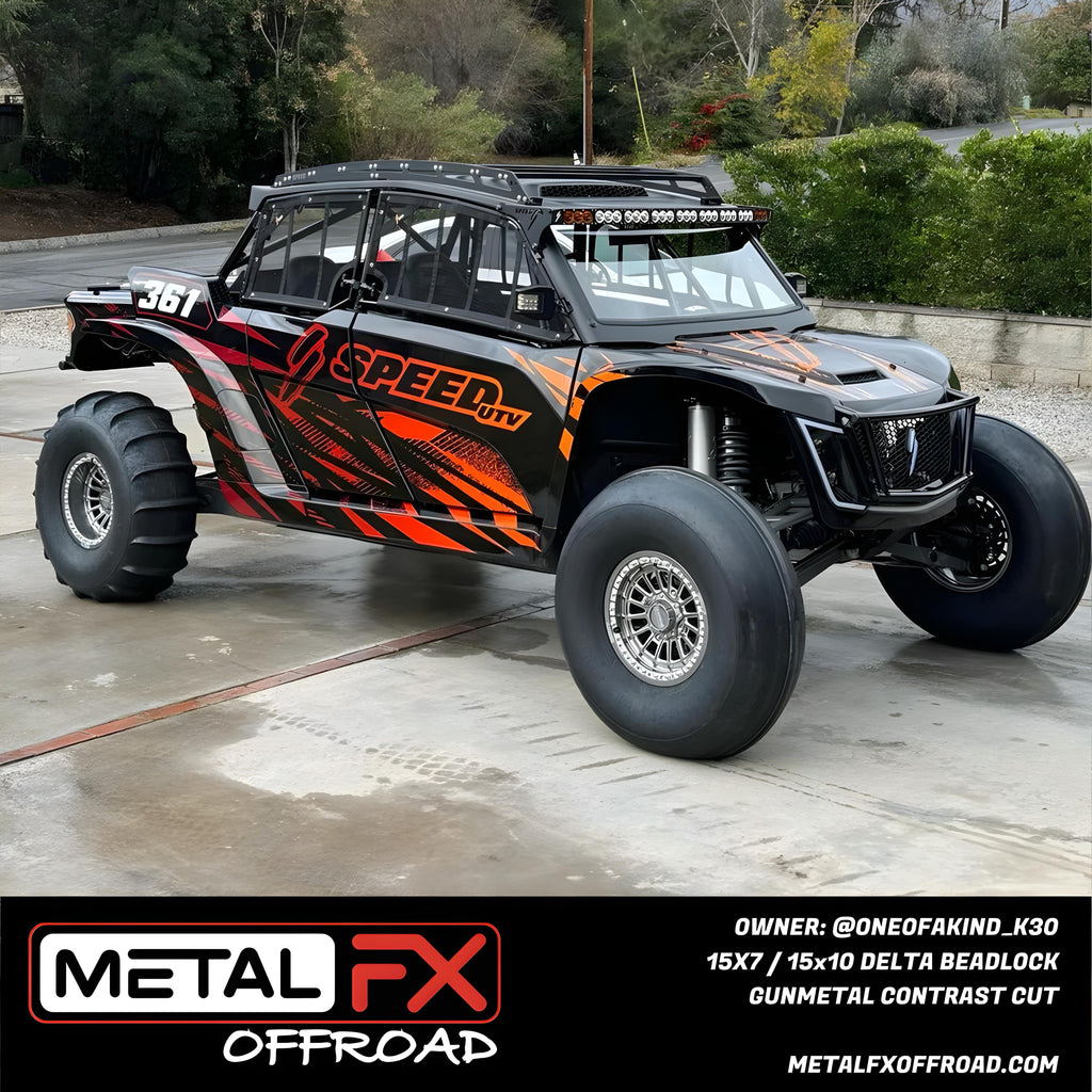 The Metal FX Offroad Delta UTV Wheel combines our technical expertise with uncompromised attention to detail creating the ultimate in style and performance. The design of the Delta includes a unique concave center and a 6061-T6 Billet Beadlock for enhanced strength and durability.